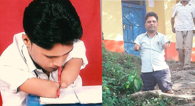 ‘शारीरिक अपाङ्गताका कारण सुरुका वर्षहरुमा अध्ययनलाई अगाडि बढाउन निकै समस्या भयो’, ‘हात नभएकाले लेख्न मात्र होइन, विद्यालय जान र कक्षाकोठामा बस्न पनि समस्या थियो ।’ समाजले जे भने पनि परिवारले पनि साथ दिएको उनले बताउँछन् । परिवारको आर्थिक अवस्था कमजोर थियो । तर पनि परिवारले ३ कक्षासम्म घरमै अध्ययनको व्यवस्था गरे ।