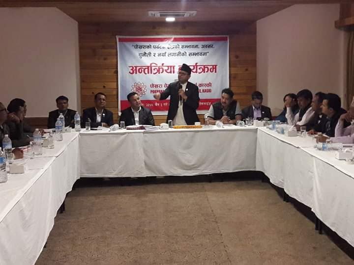 पोखरा चेम्बर अफ कमर्शका अध्यक्ष किसान सुनारले पर्यटन व्यवसाय नै आर्थिक समृद्धिको बलियो आधार भएको भन्दै उठेका सवालहरुलाइ लिपिवद्ध गरेर सम्बन्धित निकायसमक्ष पुर्याएर समाधानको पहल गरिने बताए ।