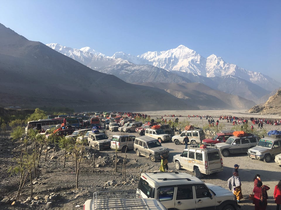 जोमसोम बजार देखि कागबेनी र मुक्तिनाथ पार्किङ स्थलमा सवारी ठेलमेल थियो ।श्राद्ध गर्ने पुजारीका दिन फेरिए ।यसपटक राजमार्गमा खोलिएका होटलहरुले पनि कमाउने अवसर पाए ।