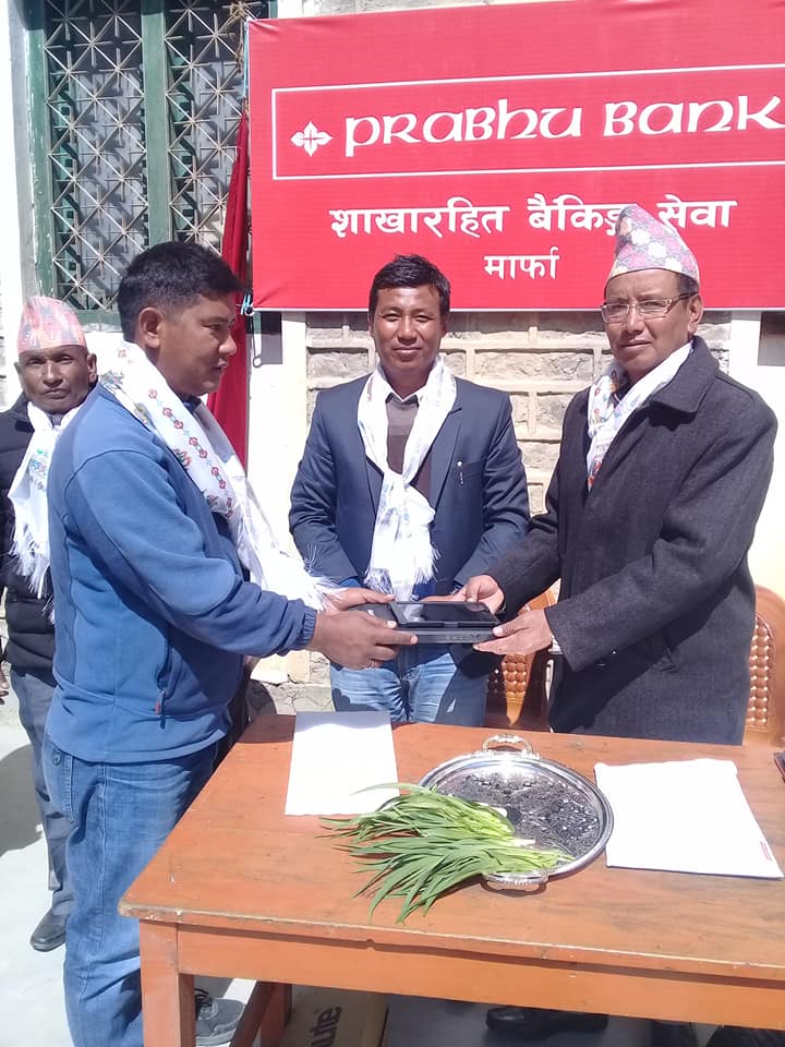 प्रभुले गत बिहिबार र शुक्रबार जिल्लाका ३ स्थानीयतहको ४ ठाउँमा सेवा फराकिलो पारेको जनाएको छ ।बैङ्कका अनुसार थासाङ गाउँपालिकाको लेते र टुकुचे,घरपझोङ गाउँपालिकाको मार्फा र वारागुङ मुक्तिक्षेत्र गाउँपालिकाको कागबेनीमा शाखा रहित सेवा प्रवाह सुरु गरेको बताएको छ ।बैङ्कले शाखा रहित सेवा संञ्चालन गर्न कर्मचारी खटनपटन गरेको छ ।मार्फामा दिपक लालचन,वारागुङमा युङडुङ गुरुङ,टुकुचेमा अमरसिह शेर्पा र लेतेमा शान्ति भट्टचन गौचनलाई जिम्मा दिईएको हो ।