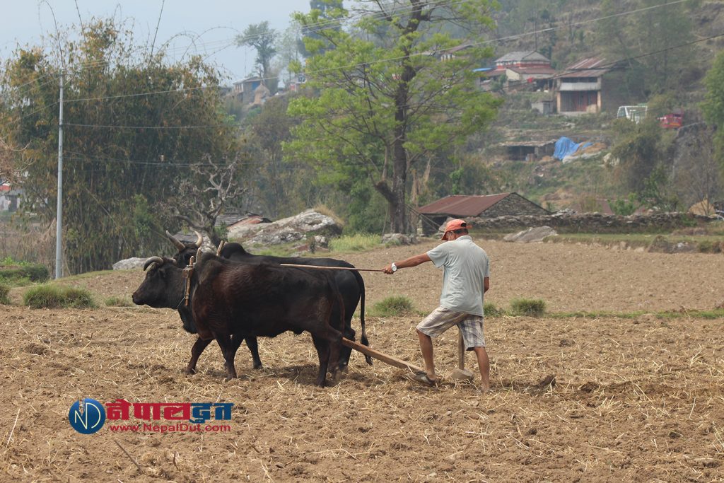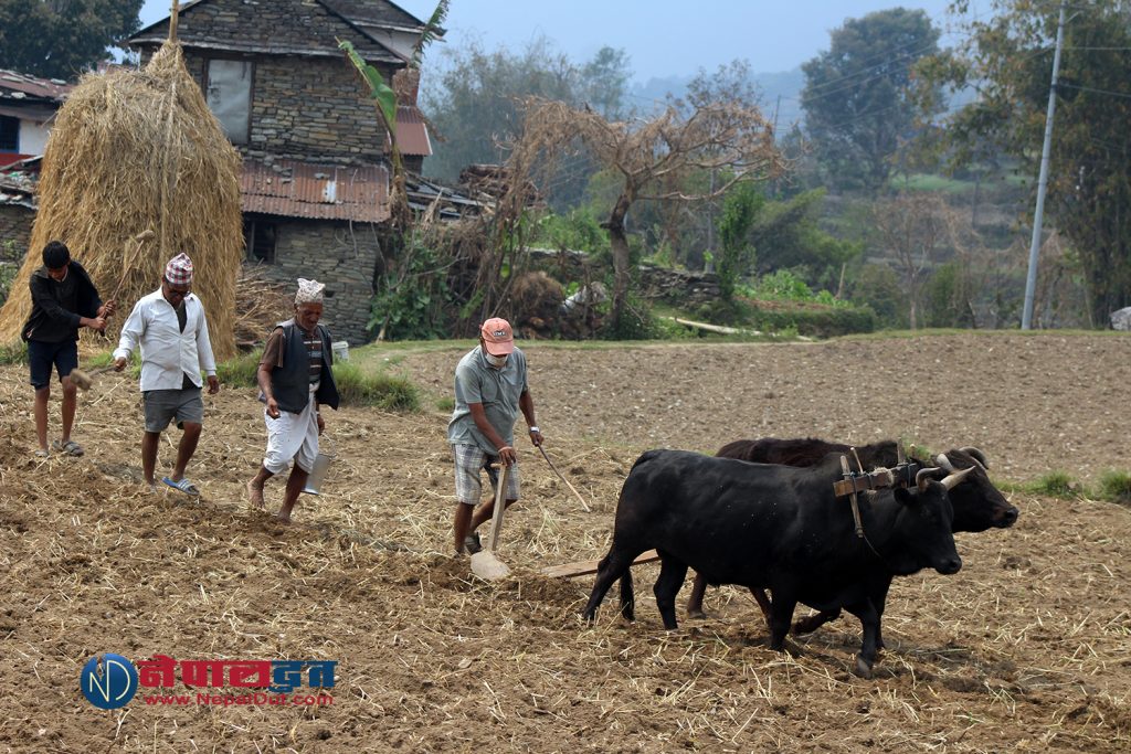 लकडाउनमा पोखरा २४ कास्कीकोटमा कृषि कर्ममा तल्लीन किसान ।