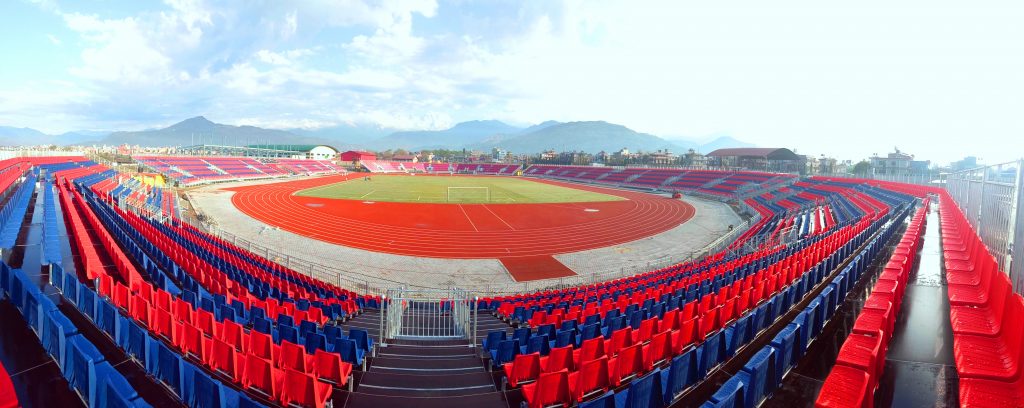 २०४० सालमा पोखरा रंगशाला फुटबल मैदान बनेको हो । दोस्रो राष्ट्रिय खेलकुद प्रतियोगिताको आयोजनाको जिम्मेवारीसँगै पोखरामा रंगशाला निर्माण हुन पुग्यो । फुटबल मैदानसहित केही पूर्वाधार बने । अहिले फुटबल मैदानले नयाँ स्वरुप लिईसकेको छ । लिगकै इतिहासमा पहिलो पटक राजधानी बाहिर ए डिभिजन लिगको प्रतिस्पर्धा गराउने अवसर पोखराले पाएको छ । नकाउट फुटबल म्याच हेर्दै आएका पोखरेली दर्शकले पहिलो पटक ए डिभिजन लिग अन्तर्गत चिरप्रतिद्वन्द्वी मनाङ मस्र्याङ्दी र नेपाल पुलिस क्लब बीचको प्रतिस्पर्धा हर्ने अवसर पाउने छ । अन्यथा लिगकै खेल हेर्न राजधानी धाउनुको विकल्प थिएन । २०७६ सालमा १३ औं दक्षिण एशियाली खेलकुद प्रतियोगिता अन्तर्गत महिला फुटबल आयोजना भएको थियो ।