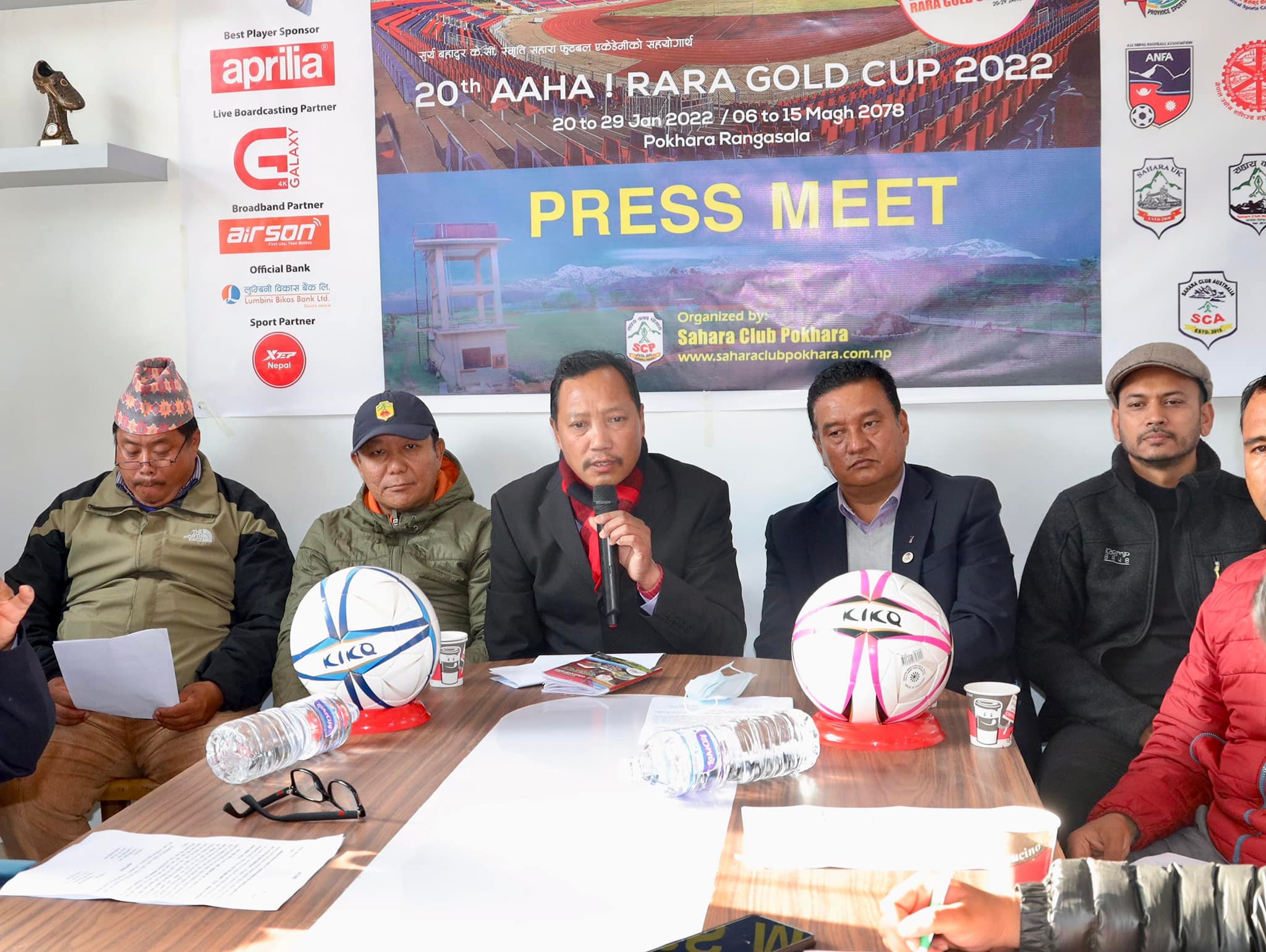 आहा रारा गोल्ड कपको २० औं संस्करणमा १० टिम सहभागी हुने भएका छन् । आयोजक सहारा क्लब पोखराले सोमबार पत्रकार सम्मेलन गरी प्रतियोगिताको तयारीबारे जानकारी दिएको हो ।