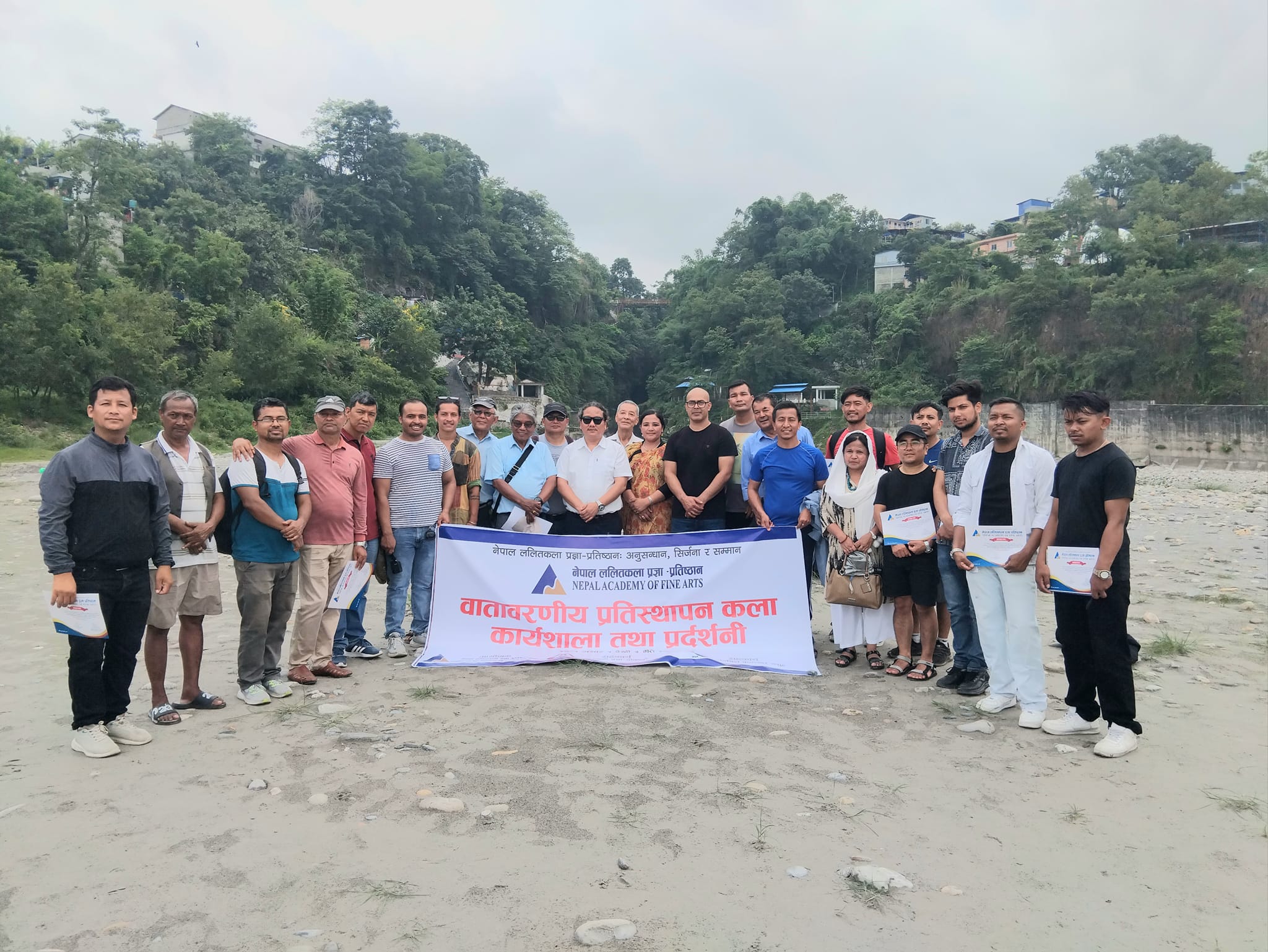 बगरमा चम्किला र रंगीन ढुंगा, माथि जमिनमा पालुवाले हरिया बनेका रुखहरु, आकासमा गाढा नीलोपन । पोखरा, रामघाटमा अचेल उम्दा कलाकारले घन्टौं लगाएर क्यामेरामा कैद गर्ने ल्यान्डस्केप चित्रजस्तो प्रकृति छ । यस्तो मोहक परिवेशमा त्यहाँ सोमबार बिहान जीवन र मानव सभ्यताका आरोह–अवरोह र समकालीन परिवेश बुझाउने कला प्रदर्शन गरियो ।