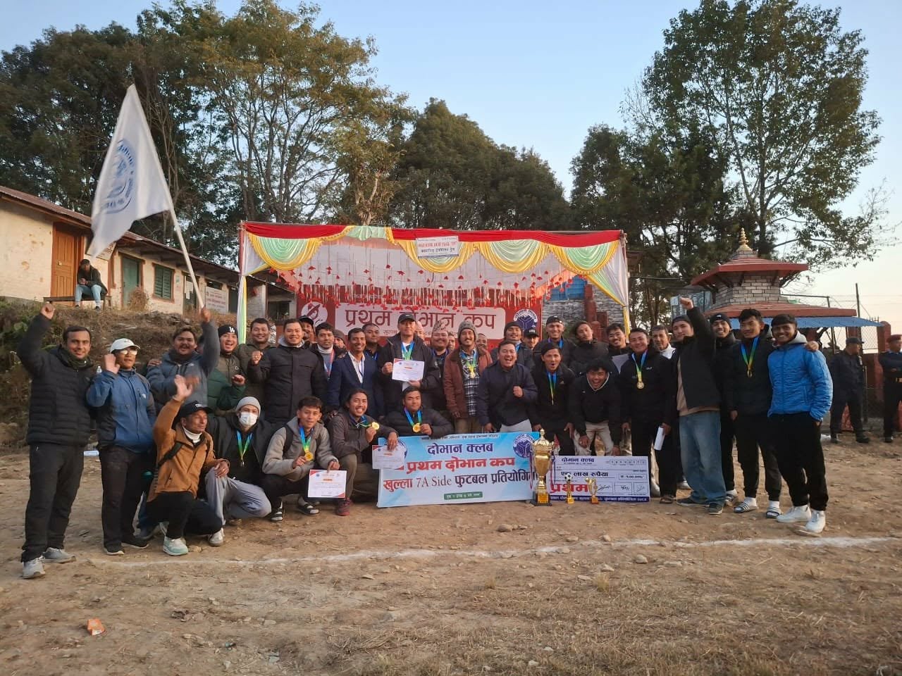 राष्ट्रिय खेलाडी सम्मिलित रामघाट फुटबल क्लबले प्रथम दोभान कपको उपाधि उचालेको छ । दोभान क्लबको आयोजनामा रुपा गाउँपालिका ६ देउरालीमा शनिबार भएको फाइनल खेलमा रामघाटले न्युस्टार ‘बि’ लाई १–० ले हराउँदै च्याम्पियन बन्न सफल भएको हो ।