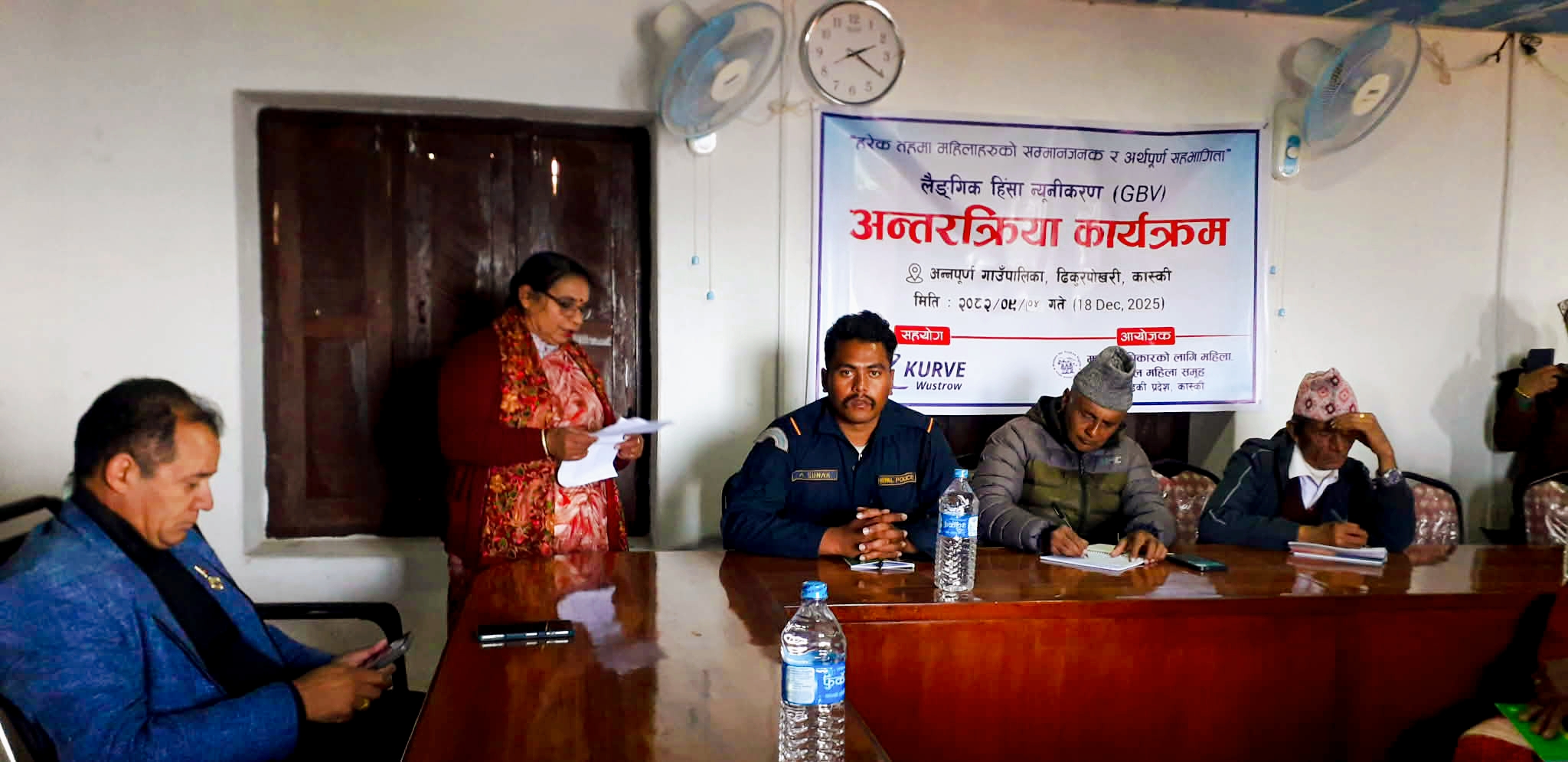 एकल महिला समूह कास्की अध्यक्ष जूना केसीको अध्यक्षतामा भएको कार्यक्रममा अन्नपूर्ण गाउँपालिका वडा नम्बर १ का अध्यक्ष तुलसीप्रसाद अधिकारी, वडा नम्बर ३ का अध्यक्ष फणीन्द्र पौडेल, एकल महिला समूहकी सहसचिव हरिमाया बराल लगायतले बोलेका थिए ।