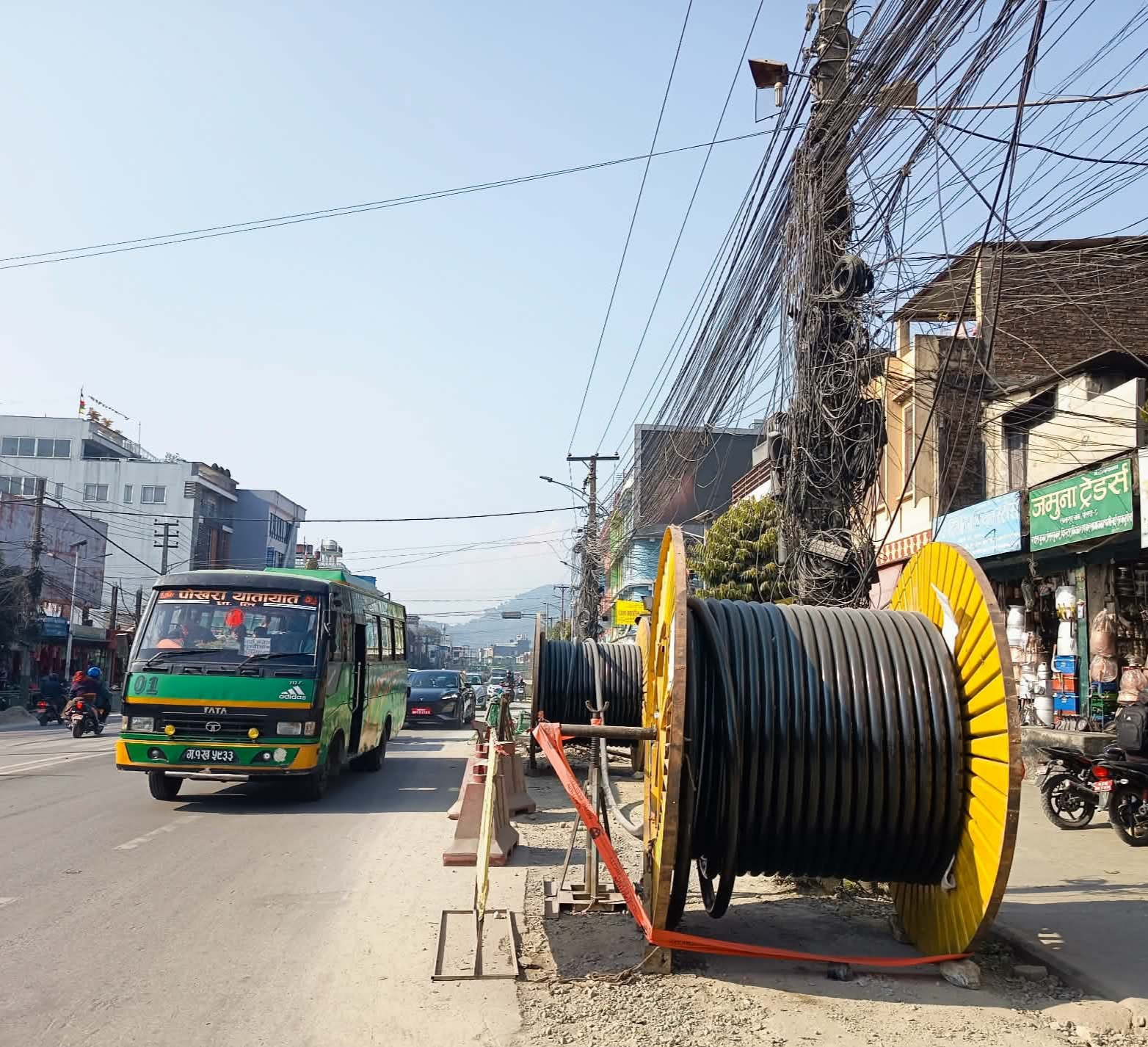 नेपाल विद्युत् प्राधिकरणको पोखरा–भरतपुर वितरण प्रणाली सुदृढीकरण आयोजनाको पोखरा खण्डमा अहिलेसम्मको भौतिक प्रगति ६५ प्रतिशत पुगेको छ । पोखरा अन्तर्राष्ट्रिय विमानस्थलबाट पृथ्वीचोकसम्मको छ लेनको सडकमा न बिजुलीका पोल छन्, न इन्टरनेटका तार ।
